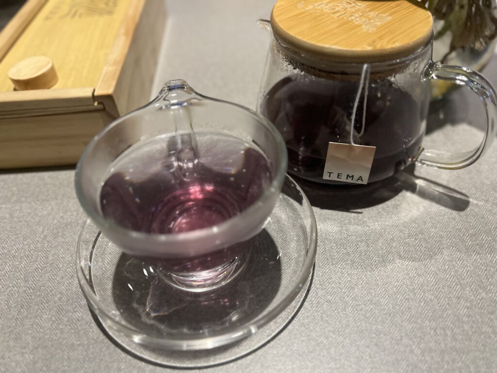 まずはホワイトティーがベースでバタフライピーなどが入ったハーブティー「Beautiful」を注文。